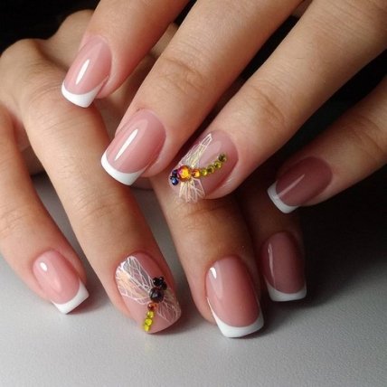 Френч всегда в тренде. "Сдержанный" маникюр подойдет для любого мероприятия. Добавьте немного блесточек в классический вариант, чтобы разнообразить обыденный дизайн ногтей.