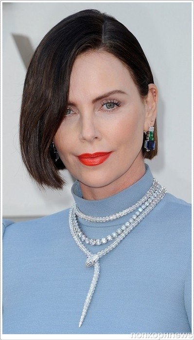 Шарлиз Терон на красной дорожке привлекла внимание не только сменой образа (из блондинки Терон стала брюнеткой), но и роскошным ювелирным гарнитуром от Bulgari, который украшали в общей сложности более 300 карат бриллиантов и 30 карат сапфиров