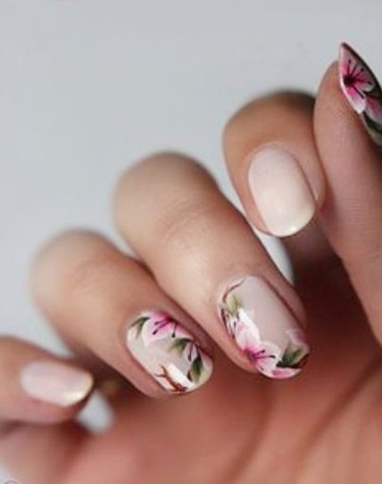 В завершении этого списка с новинками красивого весеннего маникюра хотелось бы особо отметить то особое мастерство, с которым nail-мастера рисуют на ногтях цветочные узоры. Современный маникюр с цветами поражает воображение.