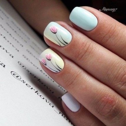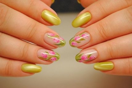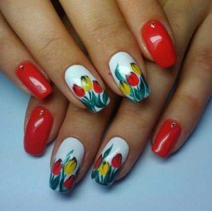 Тенденция № 6 – маникюр с яркими тюльпанами