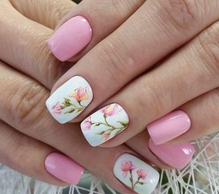В завершении этого списка с новинками красивого весеннего маникюра хотелось бы особо отметить то особое мастерство, с которым nail-мастера рисуют на ногтях цветочные узоры. Современный маникюр с цветами поражает воображение. Как это можно нарисовать на маленьких коротких ногтях?! Смотрим, и восхищаемся подборкой фото красивых цветов на ногтях.