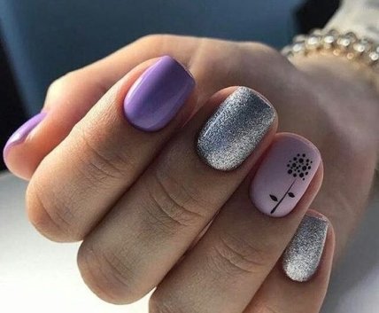 Безусловным трендом начала 2019 года в оформлении ногтей стали красочные рисунки в виде цветов, выполненные на сверкающем покрытии из блесток. Чтобы создать такой дизайн быстро, лучше использовать готовый гель-лак, наполненный блестками, только покрывать им ногти нужно тонкими слоями, чтобы не получилось слишком плотное и толстое покрытие, которое, как правило, мало носится и быстро отслаивается. Весенний маникюр с цветами и блестками любят выполнять в розовой, светло-зеленой, сиреневой или светло-голубой гамме. Пошаговая прорисовка цветка с блестками.