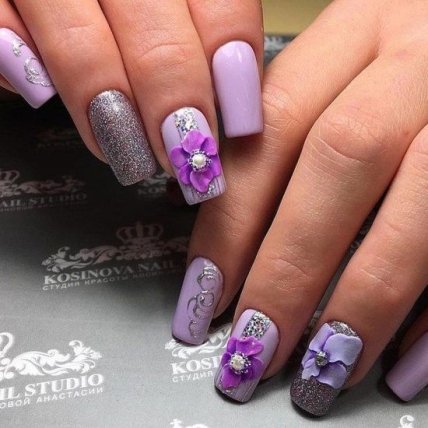 Тенденция № 2 – весенний маникюр с цветами и блестками