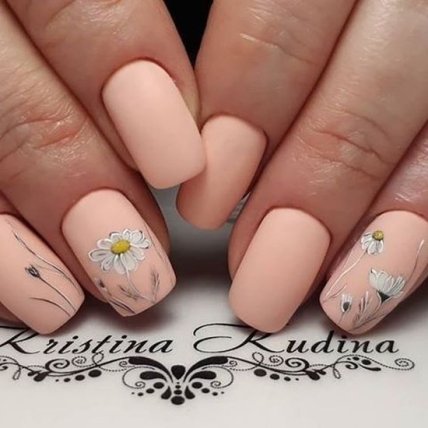 Несмотря на то, что весенний маникюр, предполагает наличие ярких красок, нюдовые дизайны не теряют свой актуальности. Ведь на основе бежевых полупрозрачных оттенков можно сделать очень красивый и нежный маникюр. Сейчас с тренде прозрачные акварельные цветы и узоры на бежевых ногтях. Нюдовый стиль хорош тем, что его можно использовать в качестве повседневного маникюра. При этом цветы напоминают о предстоящем сезоне.