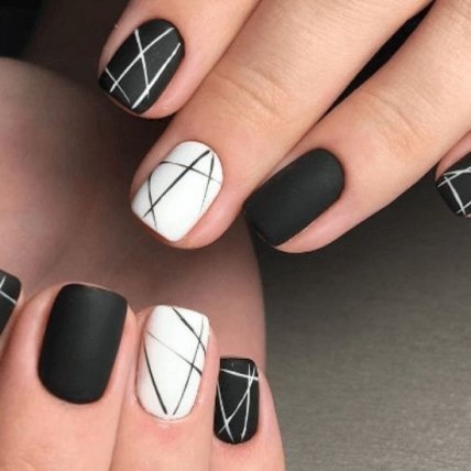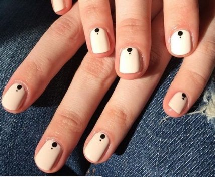Поскольку сейчас на пике моды наряды черно-белого цвета (как с узорами, так и без них), интересным решением станет выбор соответствующей комбинации цвета и в маникюре. Это могут быть монохромные узоры на ногтях или роскошный черно-белый френч. Пара рисунков в весеннем стиле подчеркнут наряд своей необычностью. Смотрите, как мило выглядят крошки-стрекозы!