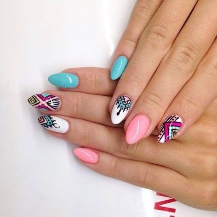 Геометрия может очень выгодно подчеркнуть ноготочки миндалевидной формы. Она изящно дополнит любую технику и цветовую гамму, создаст не просто интересный нейл-арт, а невероятно модный, ведь в этом году геометрия на пике своей популярности.