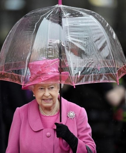 Королева очень грамотно подходит к выбору зонтиков. Каждый из них сделан в форме прозрачного купола, чтобы люди хорошо видели Ее Величество. И главным элементом является широкая цветовая линия, которая идеально подходит к наряду. Елизавета II в выборе этого аксессуара доверяет бренду Fulton.