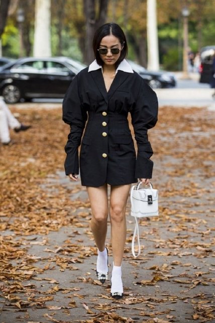 Посмотрите на этот восхитительный короткий плащ с деталями, напоминающими викторианский стиль. Эти пышные декоративные рукава прикуют к вам взгляды окружающих. Между прочим, черные платья и плащи в стиле эпохи королевы Виктории можно было увидеть на показе дома моды Dior, где была продемонстрирована коллекция от кутюр сезона "Осень-зима 2019-2020". С таким плащом надо носить короткие юбки, платья или шорты, чтобы плащик полностью их скрывал. Этот трюк заставит мужчин сходить с ума из-за разбушевавшейся фантазии. Не бойтесь надевать носочки с лодочками или босоножками. Запрет на носки с открытой обувью канул в Лету. Это одно из устаревших правил моды, о которых можно забыть.