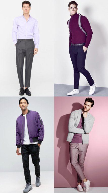 Цвет для царских особ, если верить древним римлянам и грекам. Фиолетовый часто выбирают парни, которые хотят расширить цветовую палитру одежды.