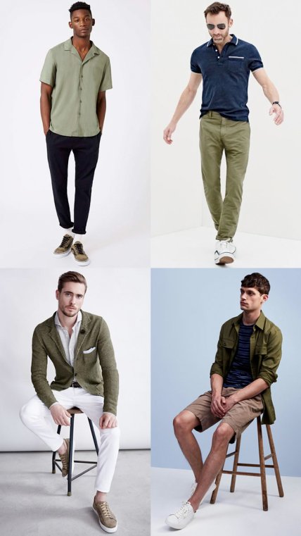 Независимо от того, какой оттенок вы выберете, этот мужественный цвет всегда сочетается с синим, белым и серым. Более темные «военные» оттенки хорошо смотрятся вместе с похожими землистыми цветами – коричневым и горчичным. Что касается подбора предметов одежды, то зеленые вещи выбирать проще всего.