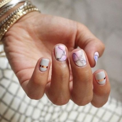 В результате получается чуть приглушенный дизайн на подобие аквариумного маникюра.
