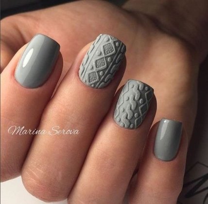 А вязаный маникюр серого цвета наоборот укутает своей теплотой и нежностью.