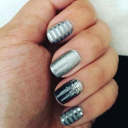 Компоновать стальной, угольный и цвет мокрого асфальта можно на одном ногте.