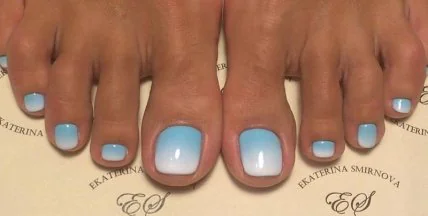 Решившись выполнить педикюр в данном направлении зимой, желательно отдать предпочтение холодному синему оттенку. В летний период можно побаловать себя ярким и насыщенным голубым электриком.