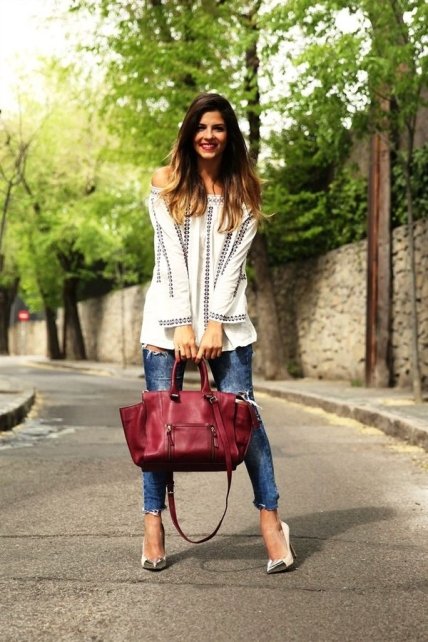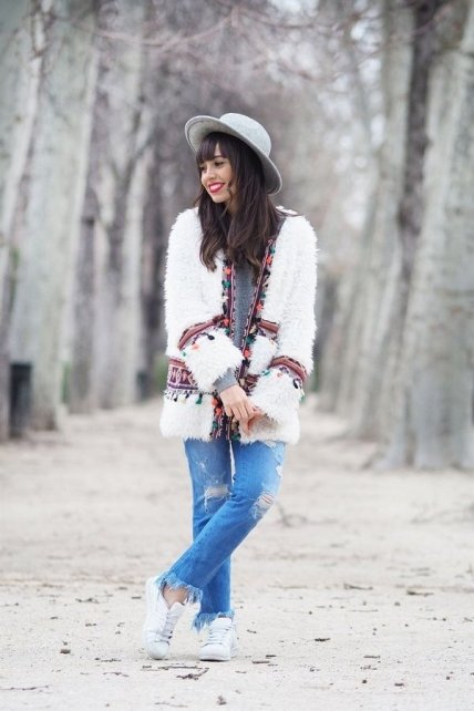 Любите сочетания с рваными джинсами? Тогда присмотритесь к этому воплощению богемного стиля. Не обрезайте нитки по краям штанов, ведь бахрома сейчас в моде. Вы и сами можете превратить вещи в богемный гардероб. Достаточно сделать соответствующий орнамент с вышивкой или аутентичной отделкой.