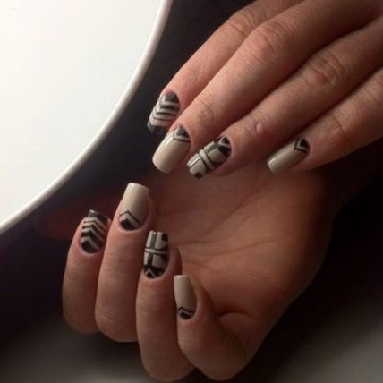 Этот вид — один из самых востребованных и стильных дизайнов в этом году. На ноготках можно изображать ромбы, треугольники, горошек, клетку, а также разделять ноготок на ровные или абсолютно разные между собой сегменты.