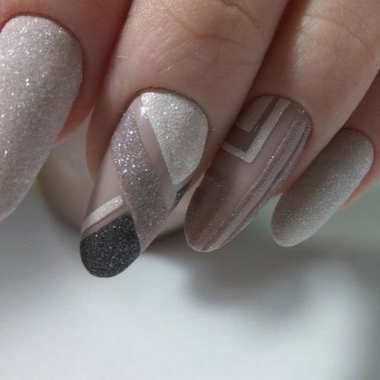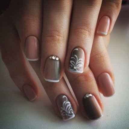 Такой маникюр изящно смотрится в комбинации, с французским маникюром. Совмещенные дизайны эффектно дополняют друг друга.