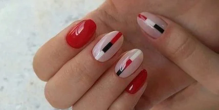 Геометрический маникюр шеллаком — идеальный вариант для офисного делового маникюра.