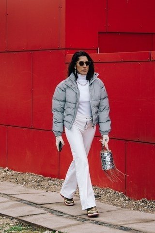 Дутая куртка станет желанной вещью для всех модниц. И не важно, каким будет стиль образа: классическим или спортивным. В новом сезоне вы всегда найдете дутую куртку под любой образ. Одним из идеальных вариантов станет сочетание белых штанов, ярких кроссовок и белого свитера. Добавьте к образу яркую сумку оригинальной формы, и праздничный наряд готов!