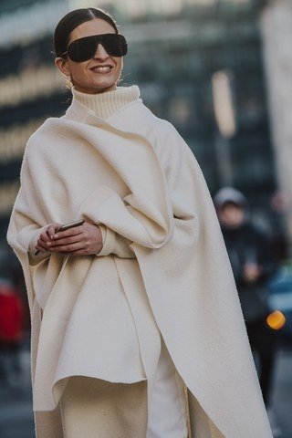 Да, эта вещь снова возвращается в список тенденций. Брендовые магазины будут переполнены пончо самых разнообразных цветов и форм. Поэтому комбинация светлого пончо и белого свитера с высоким горлом будет беспроигрышной. Получится теплый, изысканный, стильный образ.