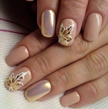 В осеннем маникюре можно использовать блестки и украшения, ведь осень – золотая пора, нужно соответствовать.