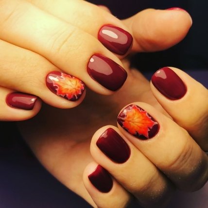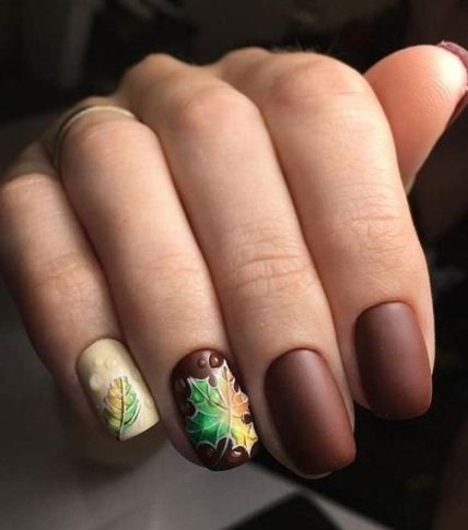 Осенние листья на ногтях — это, конечно, наиболее распространенный осенний маникюр. Вы можете нарисовать осенние листья на каждом ногте или же сделать акцент лишь на одном.