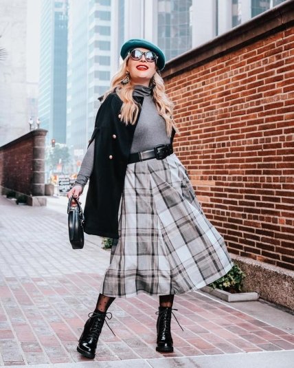 Интересно на женщине любого возраста будет работать и юбка в клетку, которая может быть А-силуэта, плиссированная, клеш или карандаш. Сочетать такой предмет гардероба можно с водолазкой, тренчем или пальто без рукавов, а также модными ботильонами или ботинками.