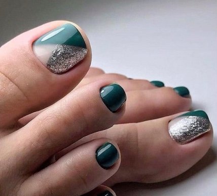 Покрасить ногти в разные оттенки, выбрав контрастные лаки или подобрав легкую цветную прогрессию (такой себе педикюр омбре), в любом случае у вас получиться модный педикюр 2019-2020.
