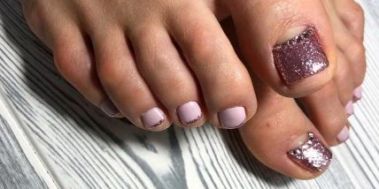 Для создания педикюра с наличием блесток воспользуйтесь глиттерным лаком . Если же ваши предпочтения более обширны, то воспользуйтесь более сложными идеями украшений в педикюре: используйте камифубуки, битое стекло, бульонки, технику втирки.