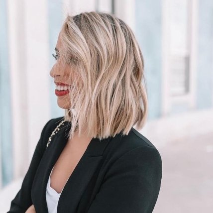 Боб без челки можно встретить даже чаще, чем каре. А все благодаря тому, что представленная стрижка смотрится довольно гармонично за счет рваных прядей. Чтобы боб заиграл, его можно разбавить модным окрашиванием или колорированием, что сделает образ женщины после 40 еще моложе и оригинальнее.