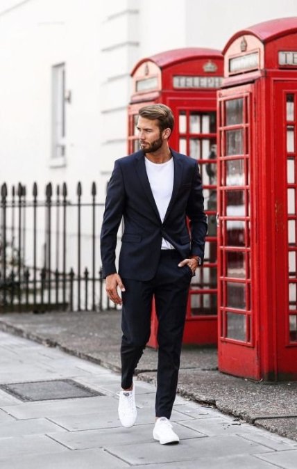 Белого, серого и черного цветов. Носите с пиджаком и джинсами. Сочетание приталенного костюма, белой футболки и белых кед сделают образ стильным и модным. Важно, чтобы футболка идеально сидела. Не была широкой, узкой, длинной или короткой. Обратите внимание и на состав. Хлопок с небольшим добавления эластина будет лучше держать форму.