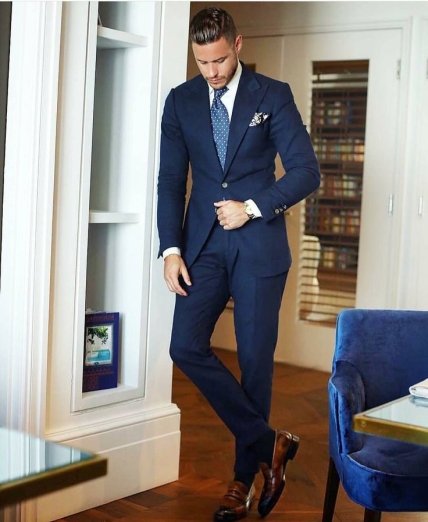 Темно-синий - универсальный цвет для мужчин. Прекрасно подойдет для любых мероприятий, от деловых переговоров (с продолжением в ночном клубе) до свадьбы друга. Кстати, не думайте, что всегда сможете отделаться лишь костюмом. Если вас, как всегда, неожиданно, пригласят на вручение какой-либо премии, то понадобится смокинг. А если же вы настолько круты, что вас удостоит своим вниманием Королева Великобритании - тут никуда не деться без фрака. На костюме нельзя экономить. Это инвестиции, которые быстро себя окупают. Если вы не знаете, какой костюм выбрать, обратитесь к мастеру по пошиву костюмов. Вам расскажут, что подходит и создадут костюм по вашим меркам. А по стоимости то же, что и хороший костюм в магазине.