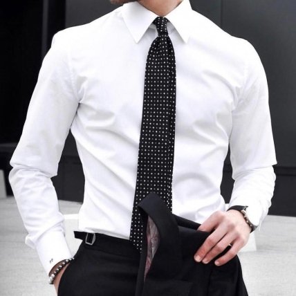 Ее можно носить с костюмом и галстуком. Можно сочетать с джинсами и casual пиджаком. Летом, подвернув рукава на два подворота, носите с брюками чинос и белыми кедами. Главное правило: идеальная посадка. Рекомендуем не менее трех штук. Воротник рубашки самая важная деталь. Лучше выбрать (cutaway, акулий плавник, spread). Лучшая рубашка – рубашка по меркам. Со своими инициалами на манжетах той руки, которой здороваешься.