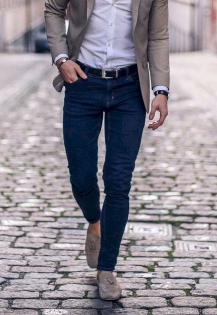 Хорошо сочетаются с рубашкой, футболкой и пиджаком. Рваные и протертые джинсы отдай неформалам, а себе возьмите новые и целые во всех местах. Помните – джинсы всегда должны выглядеть качественно и дорого.