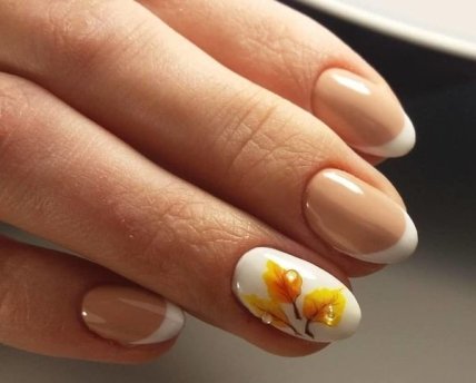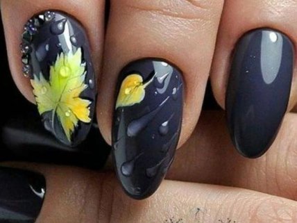 Самой популярной и неувядающей идей для создания осеннего маникюра является выбор покрытия с осенним украшением.