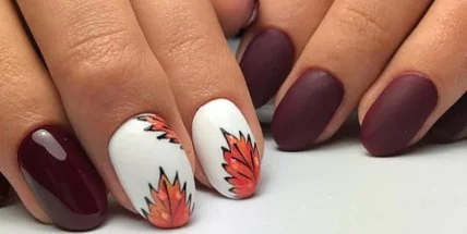 Самой популярной и неувядающей идей для создания осеннего маникюра является выбор покрытия с осенним украшением.