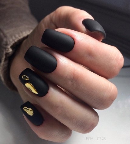 Однако это не традиционный глянцевый блеск, а матовая сдержанность, которая покоряет своим минимализмом. Не стоит отрицать, что черный подходит всем, поэтому маникюр в этом цвете подойдет как для повседневных, так и для праздничных мероприятий.