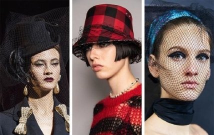 Вуаль нередко присутствовала в коллекции дома моды Dior, где были показаны изысканные наряды «от кутюр» сезона «Осень-зима 2019-2020». Само собой, дизайнеры предлагают украсить вуалью и шляпки. Это просто потрясающий головной убор для выхода в свет. Такие шляпы позволят создать роскошный наряд с черными чулками.