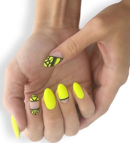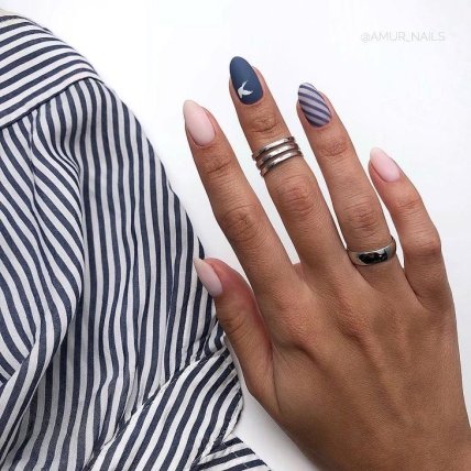 Геометрия все также остается на пике популярности. Гармонично она будет смотреться в маникюре и этим сентябрем. Используйте стильные полоски, треугольники и другие фигуры, которые могут выполняться с помощью слайдеров или ручной прорисовки.