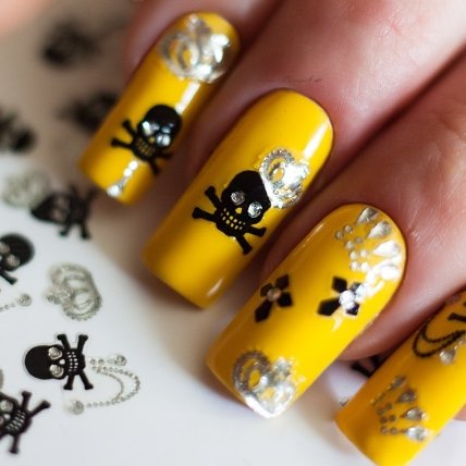 В предстоящем году на пике популярности будет шеллак с оригинальными наклейками. Такой маникюр под силу любой моднице, так как для его создания совершенно не нужно уметь рисовать. Если вы предпочитаете следить за своими ногтями самостоятельно, тогда при нанесении шеллака вам нужно быть крайне осторожными.