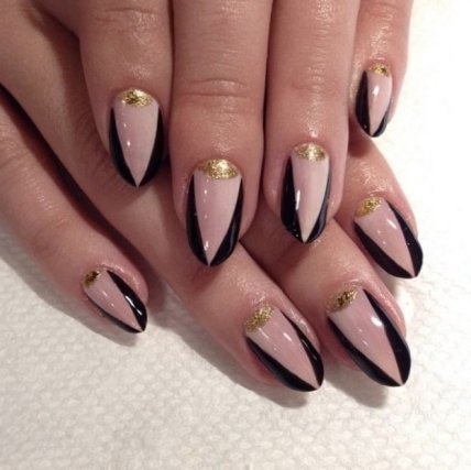 Осенью очень много вариантов дизайна представляют собой соединение привычного французского дизайна ногтей, лунки и перевернутой улыбки. Лунка изначально представляла собой антипод стандартного френча. Акцент был перемещен к основанию ногтя. Внимание переходит к прикорневому пространству. Таким образом ручка приобретает более ухоженный вид.