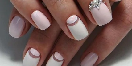 Лунный маникюр, не только в пастельных тонах, в принципе никогда не помешает твоей карьере. Лунку у основания ногтя можно покрыть контрастным оттенком или же прозрачным лаком.