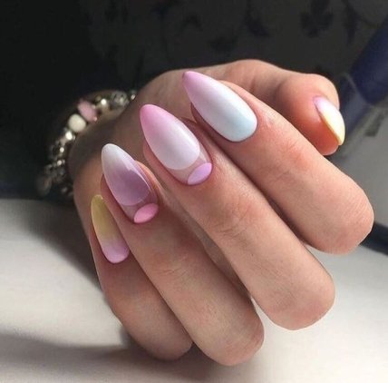 Эта техника нанесения цветного покрытия на ногти позволяет реализовать интересные задумки дизайна и сделать ноготки яркими, стильными и интересными.