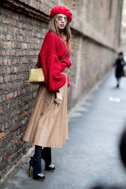 Береты входят в число самых актуальных головных уборов. Они привносят в наряд нотку французского стиля. Цвет берета можно сочетать и с другими деталями гардероба. К примеру, красный берет будет стильно смотреться со свитером того же оттенка. Красная гамма осенью в моде, но как бы сильно вы ни любили красный цвет, старайтесь избегать полностью однотонных образов, иначе облик будет слишком агрессивным и даже вызывающим.