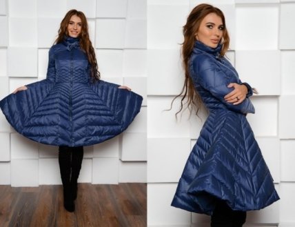 Модельеры недаром едят свой хлеб – их выдумкам попросту нет границ. Пуховые платья, целевой аудиторией которых станут невысокие стройные барышни, выглядят просто великолепно и нисколько не уступают дорогим шубкам. Нижняя часть этой одежды выкроена в форме юбки-полусолнце «миди» или «мини». Вверху пальто плотно охватывает фигуру благодаря минимальной толщина наполнителя, теплоизоляционные характеристики которого невысоки.