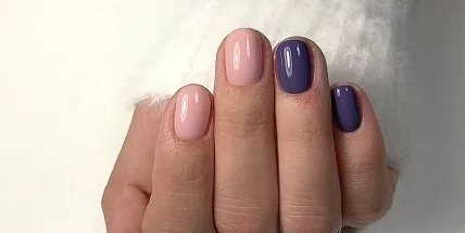 Два ногтя окрашиваются в тона из одной цветовой гаммы. Обычно это переход одного цвета в несколько тонов (темно-синий, синий, светло-синий, голубой, пастельный голубой или коричневый, винный, алый, красный, светло-красный, красно-розовый, розовый). Такой двухцветный маникюр смотрится довольно гармонично как на коротких ногтях, так и на длинных.