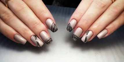 Маникюр паутинкой на ногтях может быть выполнен в виде классического френча. Также есть необычные френч-дизайны, в которых на кончиках ногтей нанесена и растушевана обычная гель-краска, а поверх нее нарисованы хаотичные круги из паутинки.
