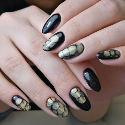 В дизайне можно использовать как сплошное покрытие ногтей слайдерами, так и вырезать отдельные детали рисунка и использовать их в комбинированном маникюре.