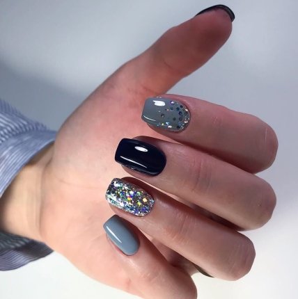 Не менее универсальный цвет - серый. Он очень подходит для делового дневного маникюра. Темный оттенок маренго зрительно сужает и вытягивает ногтевую пластину, а благородный жемчужно-серый выглядит очень скромно и неброско. Для теплого оттенка кожи выберите серо-бежевые и серо-коричневые лаки.
