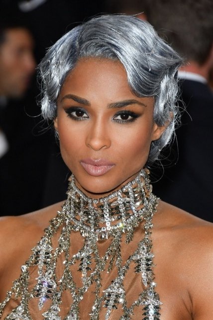 Резкие, текстурные волны на коротких волосах придадут вам сходство с сексуальными роковыми соблазнительницами. Седина не испортит образ, если добавить ей роскошных переливов черного серебра!
